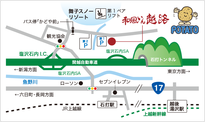 塩沢石打ICより約1分