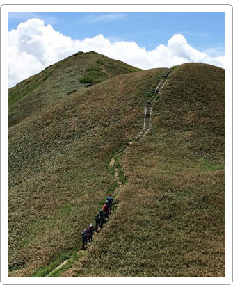 スタッフのガイドで山登りを楽しみましょう! 山頂の澄んだ空気は、格別ですよ。