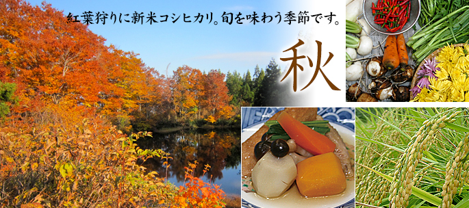魚沼の絶景。一面の田んぼは黄金色に色づき、畑では秋野菜が徐々に食べ頃になります。