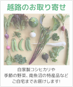 和風いん越路は、民宿として初めて「本物が食べられる」雪国A級グルメ認定旅館に選出されました。食材にこだわった越路のお料理を、ぜひ味わってください。